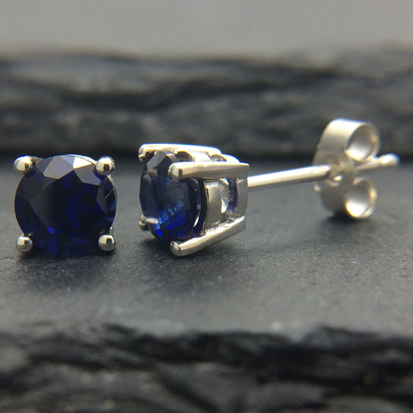 Sterling Silver stud earrings, set with a 5mm lab created Blue Sapphire.